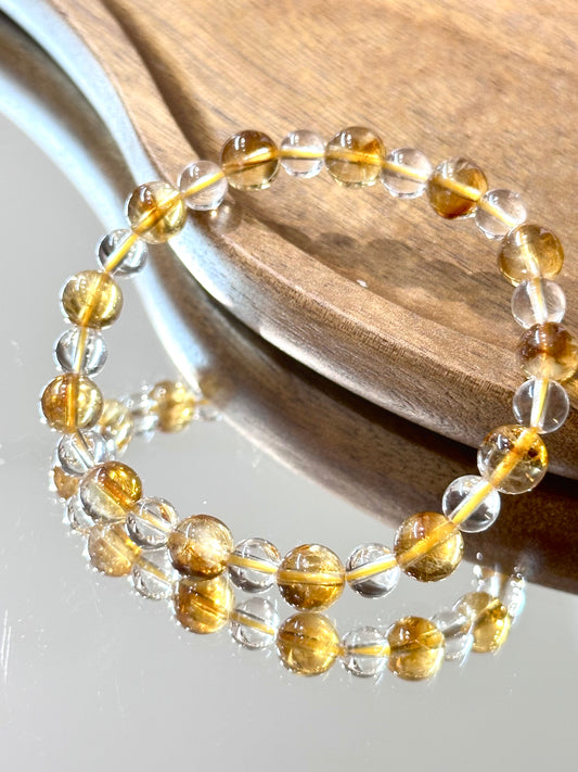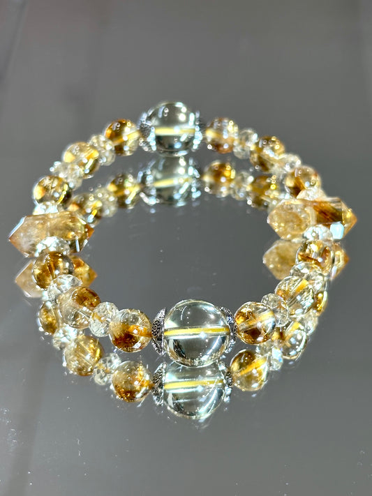 Golden Light Pyramid Citrine & Clear Quartz beaded Bracelet | Crystal Healing Jewelry for Abundance Clarity | Handmade Energy Gift