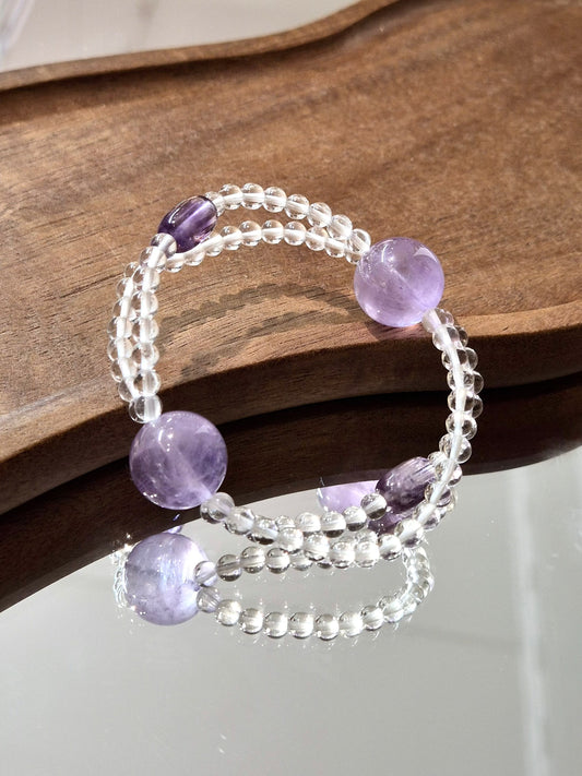 Natural Amethyst & Clear Quartz Double Layer Bracelet – Handmade Healing Crystal Jewelry for Energy Balance