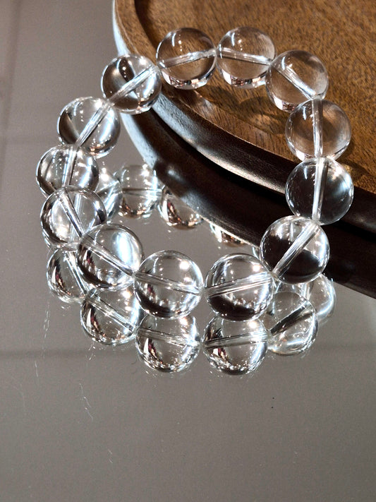 Natural Clear Quartz Crystal Bracelet, 16mm Round Beads, High Clarity Healing Stone Jewelry